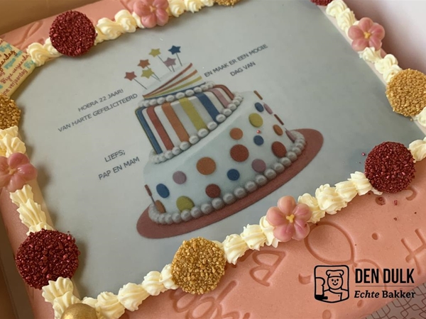 Bak online je eigen taart voor 12, 16, 20 of 25 personen. Volg alle stappen en stel zo je eigen persoonlijke taart samen. Kies je biscuit, de vulling, de afwerking en decoratie. Schrijf een tekst en voeg als laatste een foto toe. Deze foto kan je in ons systeem ook nog bewerken. Probeer het eens.